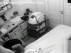 There was a security camera following her each move when a carnal lass got into the doctor's office, so one time that babe removed her panties and disclosed her vulva it was caught on tape.