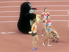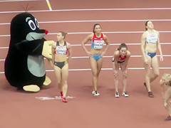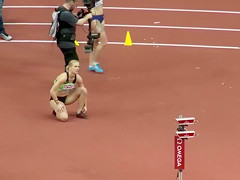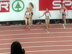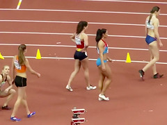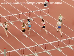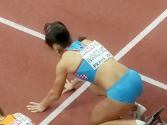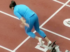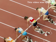 Sexual fit sportswomen wearing truly constricted clothing that accentuated all of their curves as they prepared to run in an athletics event at the stadium.