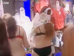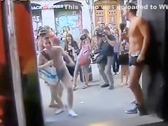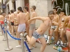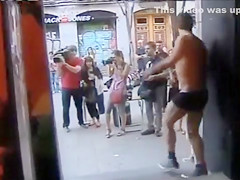 Spain students wearing merely underclothing await in front of the shop for it to open