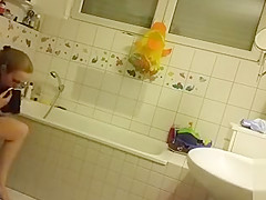 With a hidden camera recording from the corner of the bath, an gracious juvenile mamma stripped, disclosed a couple of round wobblers and washed a unshaved snatch previous to brushing teeth.