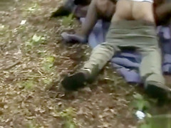 That Babe sucks wang and lies on her back to receive team-fucked in the woods. This Babe craves as much dick in her cum-hole and spunk on her melons as possible and there are many boyz lined up to fuck her.