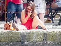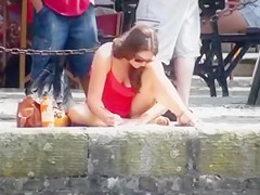 As it was marvelous obvious that half of her cute meatballs and her superb pants were quite visible, the perv who was close to the angel decided to begin filming her.
