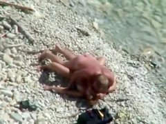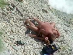 Fast humping for the girlfriend's twat on the beach