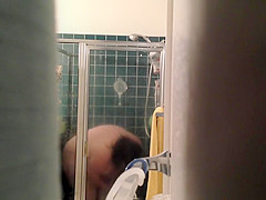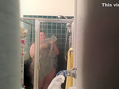 Voyeur spyes on his wife whilst that babe in the shower bathing