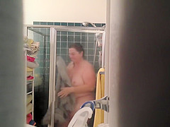 Plump dilettante woman has no clue that her pervert hubby is watching her when this babe enjoys the shower, drooling over these biggest boobs and dreaming about banging her large time