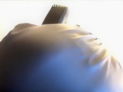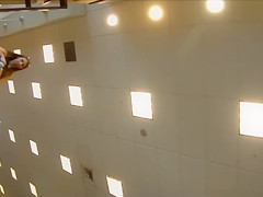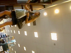 Seeing how short her dark costume was, I somehow managed to acquire my phone right underneath it and record this breathtaking looker's red pants as this babe was reaching for smth.