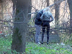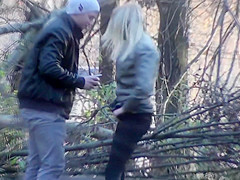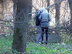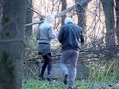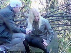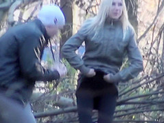 With her boyfriend keeping her company and shielding her, ineffectively, from prying eyes, a gorgeous chick pulled down her panties by the tree and took a lengthy whiz.