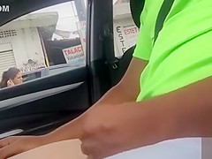Since a hawt lady was not able to watch him doing the deed, an highly lascivious chap whipped out his ramrod in his car and jerked it off actually hard on her.