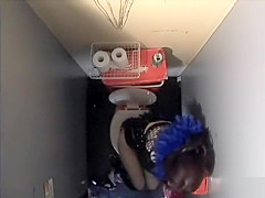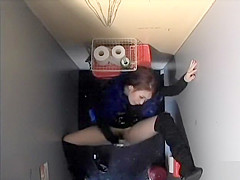 Wild Oriental sweetheart filmed in the club biffy when roughly masturbating