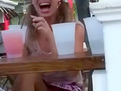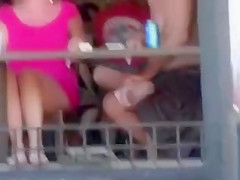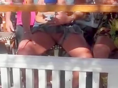 It’s the ultimate upskirt show as a large group of ladies sit facing the street and flash their hairless love tunnels to everybody walking by. People take pictures and movie scene of the many immodest clefts.
