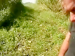 Breana in bitch gives face hole gagging bj in the outdoors