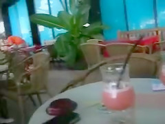 Our drinks rest on the table as my darling sits across from me with her legs widen and a pretty cunt on display. She’s my upskirt queen and I love her!