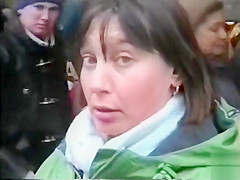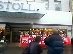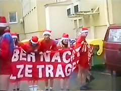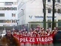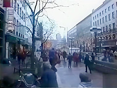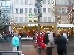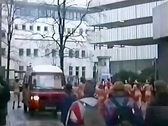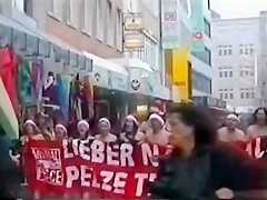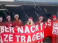 It’s snowing as a group of nudists make their way throughout this German town. Crowds of people see, film 'em, take fotos and there are some sweet female booties in the mix.