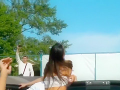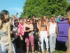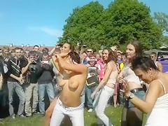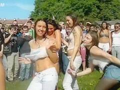 All the boyz who were close to this event just now gathered around those chicks, and it's no wonder why. The beauties in moist t-shirts were feeling nice-looking naughty that day!