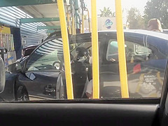 Gorgeous female butt at the gas station