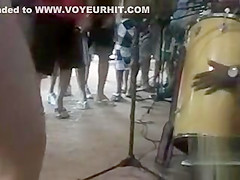 Enchanting beauties shake their butts above a bottle, in a game which is designed to cause as many boners as possible. Everybody around is cheerful to see those in nature's garb dancers.