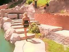 Incredible pornstar in lewd golden-haired, outdoor sex scene