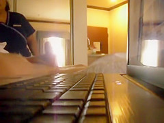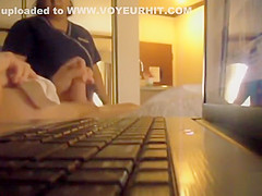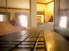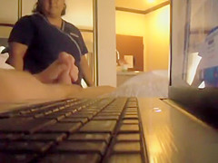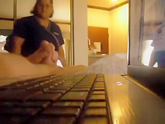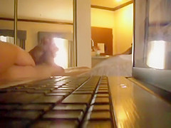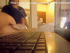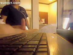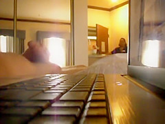 He’s stripped in couch and jacking off when the woman comes in to clean. Instead of turning around this babe comes closer and watches him to his utter amazement and delight.