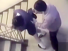 That Babe bows over and grabs the railing for balance as that guy pounds her pleasant wet crack from behind, doing it in the actual college where a voyeur fellow films 'em.