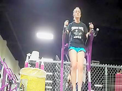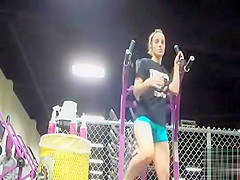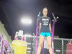1St this babe works the Stairmaster with her non-professional arse on camera. Then this babe does lusty leg lifts to work her abs, and lastly it’s sit-ups during the time that her crotch is filmed by her livecam.