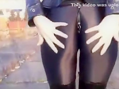 Her dark spandex panties are like a second skin, clinging to her gazoo and snatch perfectly as this babe teases. The haunch high latex boots a very worthy touch likewise.