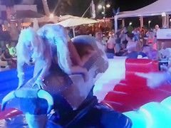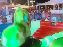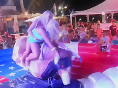 2 blond sweethearts with large butts and hot love muffins are on the bull jointly and they ride it for the audience. They’re one as well as the other in pants so their asses are quite visible.