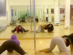 Mirrors are all over the dance studio and the 2 ethnic honeys in spandex panties dance up a storm in front of 'em. The butt shaking and twerking is what sizzles.