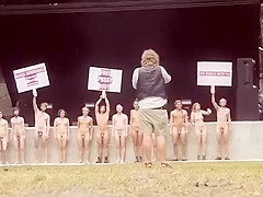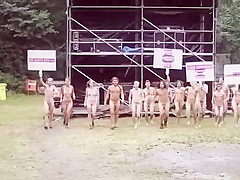 Nudists in sneakers and boots have gathered for a photo discharge and some joy. They dance, they pose for fotos, they make a little art, and they look precious in the movie scene movie.