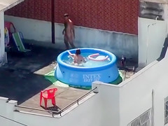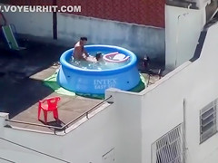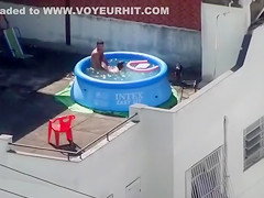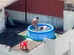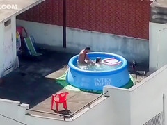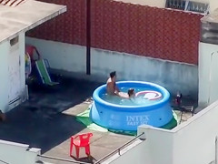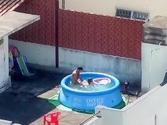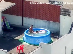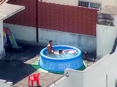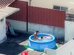 Doggy Style screwing outdoors in the pool
