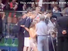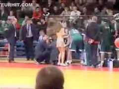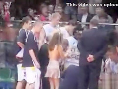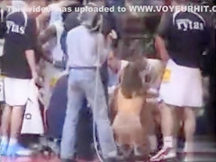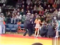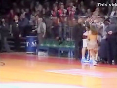 During a timeout a pleasant gal in a reservoir top and petticoat runs onto the court. That Babe quickly goes topless and runs around, but no one actually pays any attention to her, which is astonishing.