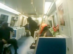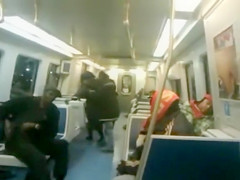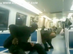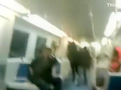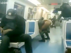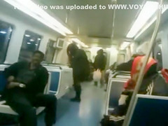 That Babe needs to pee and there’s no restroom nearby so the inebriated swarthy hottie pulls down her panties and piddles on the teach, soaking the floor with her stinky urine.