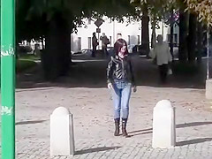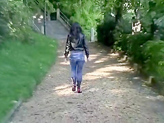 This lady sure knows what this babe loves the most good. That Babe walks around the city with her jeans soaking, and then sits on a bench in the park and massages her juicy love tunnel.