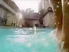 There’s a hot ginger hosting the Undressed News out of her raiment on and this babe introduces a cannonball competition with bare ladies jumping in the pool.