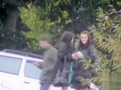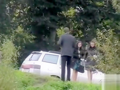 2 sexy girlfriends have sex outdoors