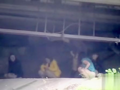 Bunch of bridesmaids taking a collective pee