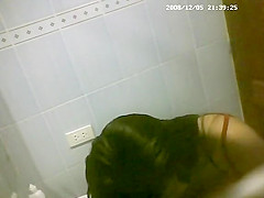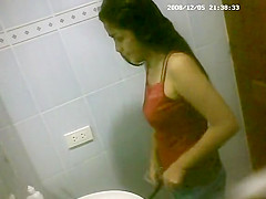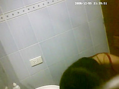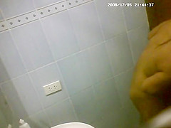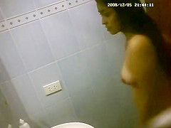 Stick around to watch it all as this sweetheart takes her time getting nude in the washroom. Eventually she’s exposed and standing at the mirror, presumably to check out her astounding whoppers.
