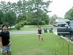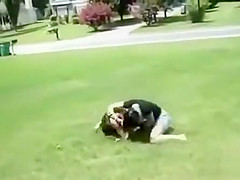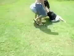 It’s a pretty day in the suburbs as 2 coed hotties have a knockdown, drag out fight in the grass. They throw punches, pull hair, and make every other hurt for real.