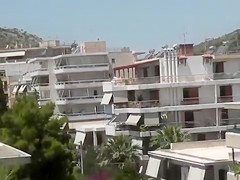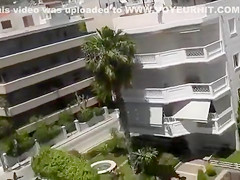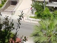 My girlfriend had an exhibitionist pont of time and I filmed the joy as that babe rides a pink sex-toy on our deck. U can watch people walking by as this babe groans and bounces up and down on it.