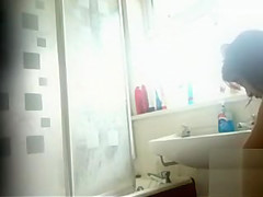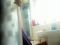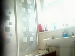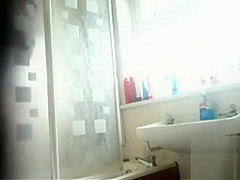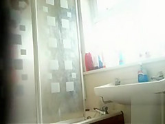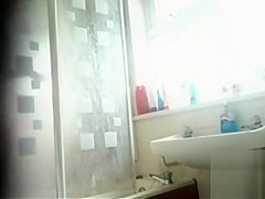Well-placed in her bath is a secret camera pointed at the shower. It shows her stripping, getting soaked and clean, and then putting her clothing on for the day.