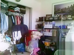 Secret camera was hidden perfectly and it easily filmed all of the features of this impressive gal - her bushy twat, constricted bum and a cute couple of boobies, with her unaware of it.