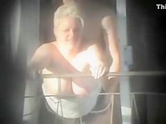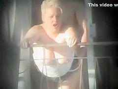 Breasty cougar acquires dicked on the balcony