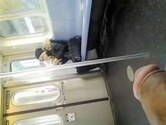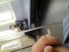 This Babe sits in the corner reading a book in her parka and this guy takes out his ramrod and strokes it, hoping she’ll look over and watch him with weenie and unshaved balls in hand.