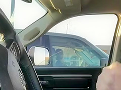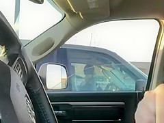 Housewife in a SUV watches him jerk off