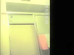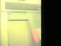 Hidden camera footage from her washroom shows the dark lady stripping undressed, taking a shower, drying off and getting clothed. Her chunky a-hole and large marangos are yours to admire.