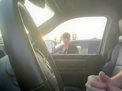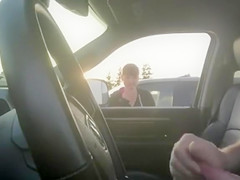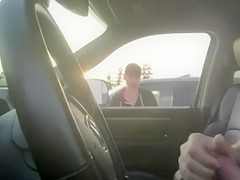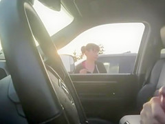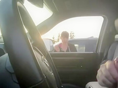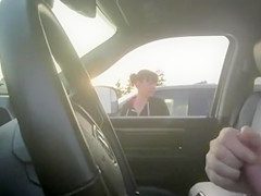 Almost All chicks would walk away from a man masturbating in his car but this lady just smokes her cigarette and watches him lazily work towards an big O.