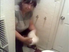She’s nearly also bulky to fit into the petite crevice in which the crap-house sits, but the big beautiful woman manages to drop her panties, sit, and make water into the bowl, giving us a great gazoo discharged when this babe stands.