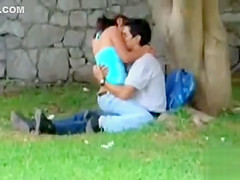 This sunny and peaceful day in the park could be even more excellent for those youthful students - they will try to copulate underneath a tree, not caring if anyone is looking or not.