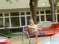 For her, being comfortable is almost any important - and that means not having everything beneath the petticoat. The voyeur across the road noticed that and made a footage.