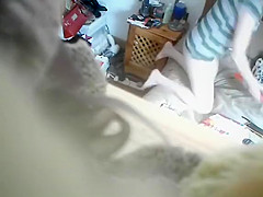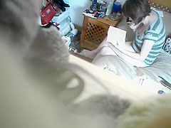 Smth that babe reads in that book acquires this woman wildly sexually excited as this babe grabs 2 dildos and pleasures her cum-hole to an incredible big O, all captured on spycam.