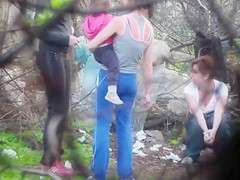 They walk into the woods so casually, drop their panties, and piddle in the foul like it’s a water closet. 2 ladies go during the time that the 3rd simply watches as a perv films from the bushes.